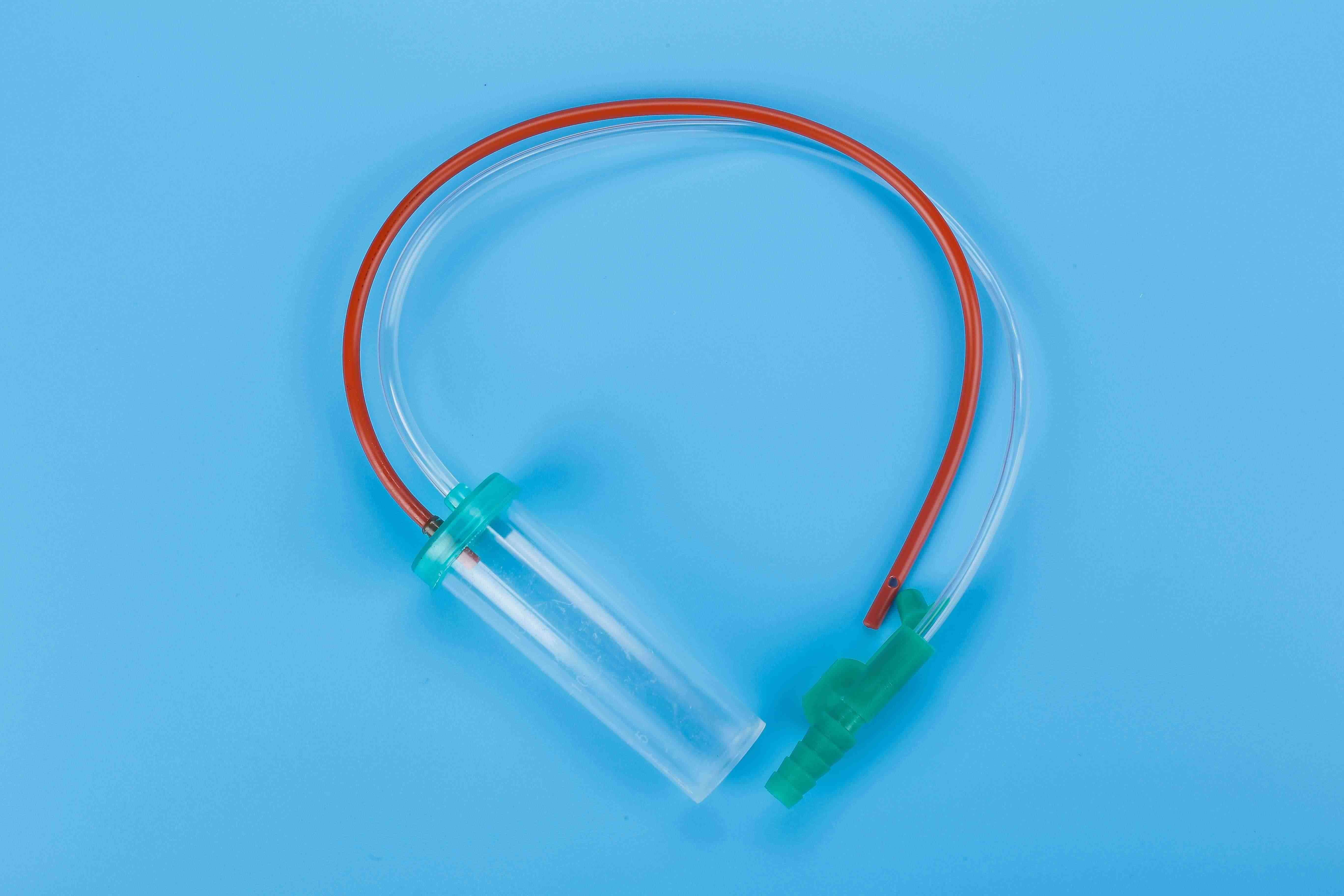一次性使用吸痰器用由儲(chǔ)液瓶(有瓶座/無瓶座)、吸入管、負(fù)壓管、接頭、瓶蓋等;按照吸入管的材料不同分為兩種型號,A型的吸入管由軟聚乙烯制成,B型的吸入管由硅橡膠制成;按照外徑尺寸不同分為2.0、2.3、2.67、3.0、3.33、4.0、4.67、5.0、5.33、九種規(guī)格